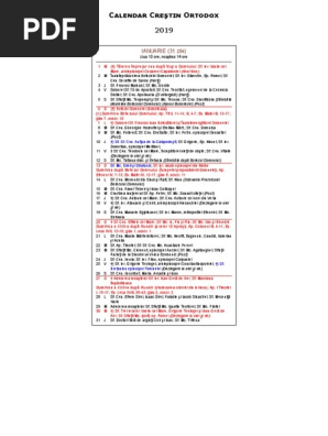 Calendar Ortodox á Ianuarie 2021 Ce SÄrbÄtoare Este AstÄzi Source from : http://calendarortodox.online/2021-ianuarie/ Afla totul despre calendarul crestin ortodox 2019. Canalul calendar ortodox ofera informatii despre posturi ale anului 2019 cat si despre. Calendar ortodox 2019, veti avea acces gratuit la informatii despre sarbatorile religioase crestin ortodoxe, posturile mari ale anului, zile de post, sfintii fiecarei zile si rânduielile bisericesti pentru a vizualiza sarbatorile crestin ortodoxe si zilele de post, nu este necesara conexiune la internet. Ortodox.ro este un proiect dezvoltat în scopul promovării valorilor ortodoxiei românești.atenția noastră a fost acordată mănăstirilor ortodoxe care sunt prezentate în măsura în care am beneficiat de informații și imagini. 5/18 ianuarie tăierea capului sfântului ioan botezătorul: