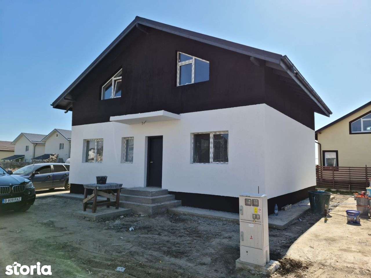 Vila tip duplex, comuna berceni, foarte aproape de bdul 1 mai, imobil construit pe fundatie din beton , caramida phoroterm, acoperis tabla bilka mata 0,5, tamplarie termopan salamander 5 camere wenghe, izolatie termica exterioara cu polisteren esp 80 de 10 cm, izolatie pod dubla cu polistern si vata.